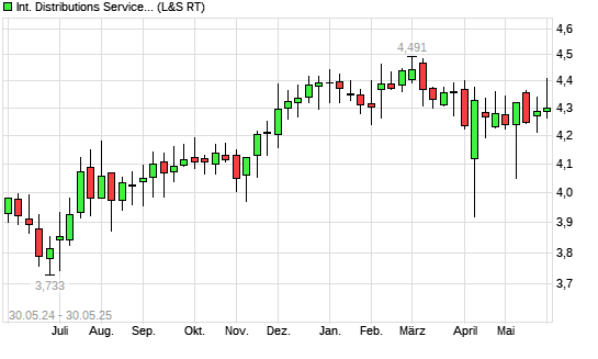 Mit dem Anstieg auf 4,60 EUR hat die Royal Mail-Aktie (ISIN GB00BDVZYZ77) am 29.05.2025 ein neues 3-Jahres-Hoch erreicht und damit den Kurs vom 27.02.2025 eingestellt.