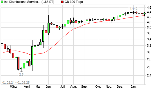 Mit dem Anstieg auf 4,30 EUR hat die Royal Mail-Aktie am 31.01.2025 die 100-Tage-Linie nach oben gekreuzt.