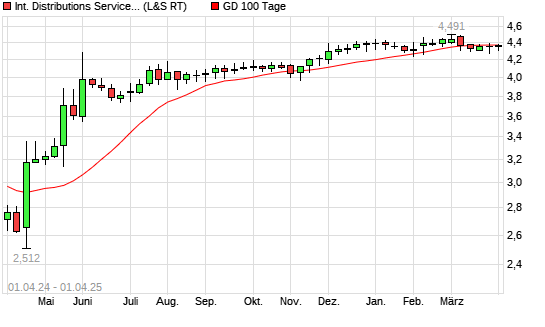 Mit dem Anstieg auf 4,29 EUR hat die Royal Mail-Aktie am 31.03.2025 die 100-Tage-Linie nach oben gekreuzt.