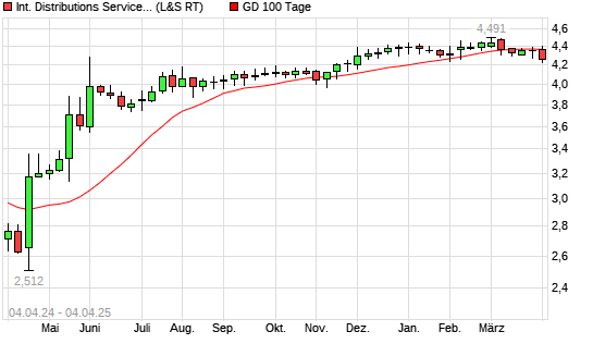 Mit dem Rücksetzer auf 4,18 EUR hat die Royal Mail-Aktie am 03.04.2025 die 100-Tage-Linie nach unten gekreuzt.