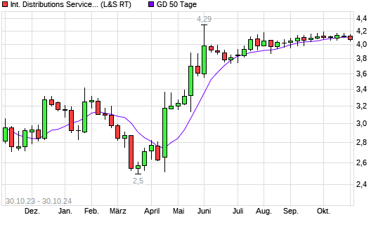 Mit dem Rücksetzer auf 4,00 EUR hat die Royal Mail-Aktie am 29.10.2024 die 50-Tage-Linie nach unten gekreuzt.