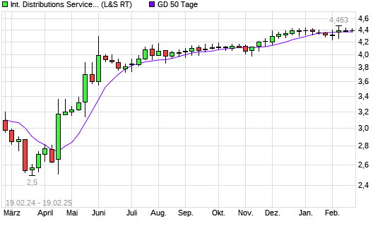Mit dem Rücksetzer auf 4,28 EUR hat die Royal Mail-Aktie am 18.02.2025 die 50-Tage-Linie nach unten gekreuzt.