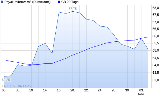 Mit dem Anstieg auf 66,35 EUR hat die Royal Unibrew Ord Shs-Aktie am 03.11.2025 die 20-Tage-Linie nach oben gekreuzt.