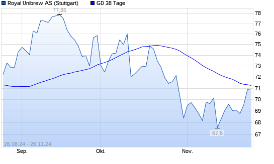 Mit dem Anstieg auf 71,75 EUR hat die Royal Unibrew Ord Shs-Aktie am 25.11.2024 die 38-Tage-Linie nach oben gekreuzt.