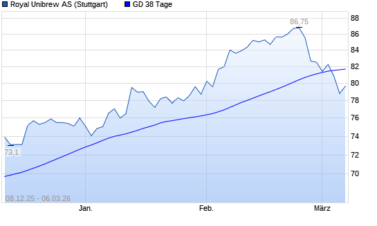 Mit dem Rücksetzer auf 79,50 EUR hat die Royal Unibrew Ord Shs-Aktie am 05.03.2026 die 38-Tage-Linie nach unten gekreuzt.Die Royal Unibrew Ord Shs-Aktie befindet sich seit ...weiterlesen