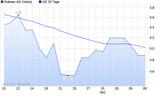 Mit dem Rücksetzer auf 4,86 EUR hat die Rubean-Aktie am 08.12.2025 die 20-Tage-Linie nach unten gekreuzt.
