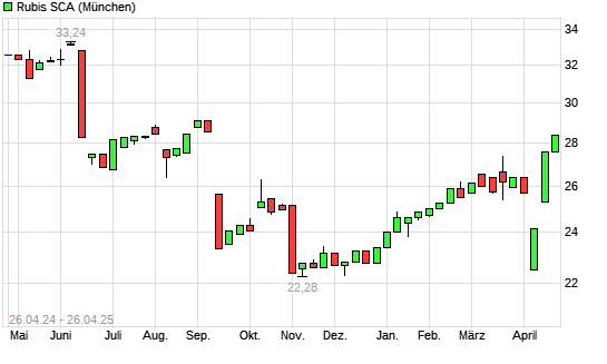 Mit dem Anstieg auf 28,14 EUR hat die Rubis-Aktie (ISIN FR0013269123) am 25.04.2025 ein neues 6-Monats-Hoch erreicht und damit den Kurs vom 24.04.2025 eingestellt.