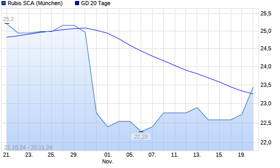 Mit dem Anstieg auf 23,60 EUR hat die Rubis-Aktie am 19.11.2024 die 20-Tage-Linie nach oben gekreuzt.