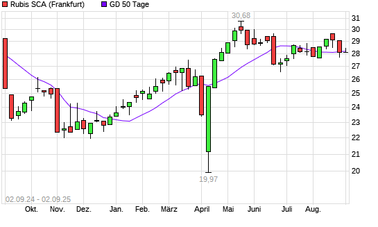 Mit dem Anstieg auf 28,38 EUR hat die Rubis-Aktie am 01.09.2025 die 50-Tage-Linie nach oben gekreuzt.