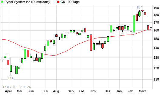 Mit dem Anstieg auf 163,00 EUR hat die Ryder System-Aktie am 16.03.2026 die 100-Tage-Linie nach oben gekreuzt.