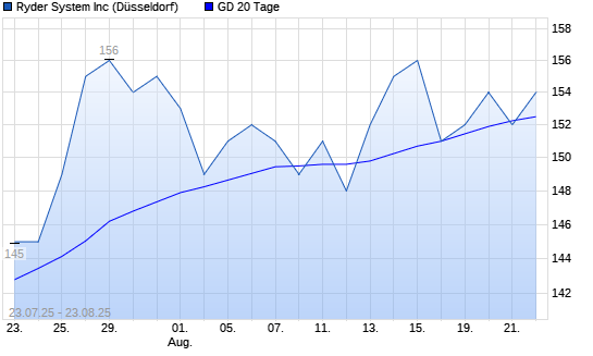 Mit dem Anstieg auf 155,00 EUR hat die Ryder System-Aktie am 22.08.2025 die 20-Tage-Linie nach oben gekreuzt.
