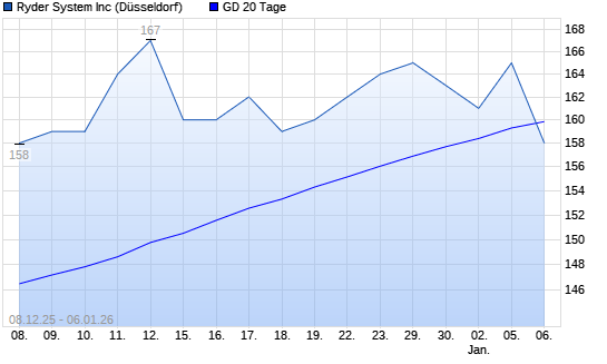 Mit dem Anstieg auf 164,00 EUR hat die Ryder System-Aktie am 05.01.2026 die 20-Tage-Linie nach oben gekreuzt.