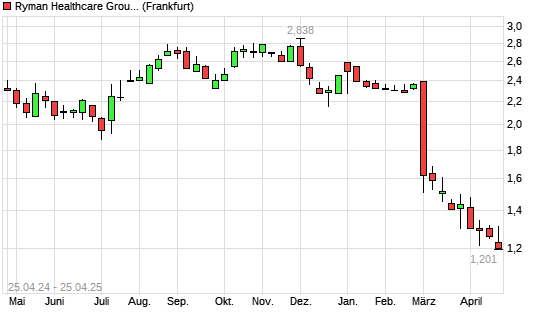 Mit dem Rücksetzer auf 1,22 EUR hat die Ryman Healthcare-Aktie (ISIN NZRYME0001S4) am 24.04.2025 ein neues 10-Jahres-Tief erreicht und damit den Kurs vom 23.04.2025 eingestellt.