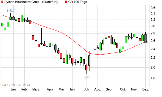 Mit dem Rücksetzer auf 2,59 EUR hat die Ryman Healthcare-Aktie am 02.12.2024 die 100-Tage-Linie nach unten gekreuzt.