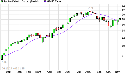Mit dem Anstieg auf 18,00 EUR hat die Ryohin Keikaku-Aktie am 05.11.2025 die 50-Tage-Linie nach oben gekreuzt.