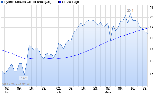 Mit dem Rücksetzer auf 18,70 EUR hat die Ryohin Keikaku-Aktie am 23.03.2026 die 38-Tage-Linie nach unten gekreuzt.
