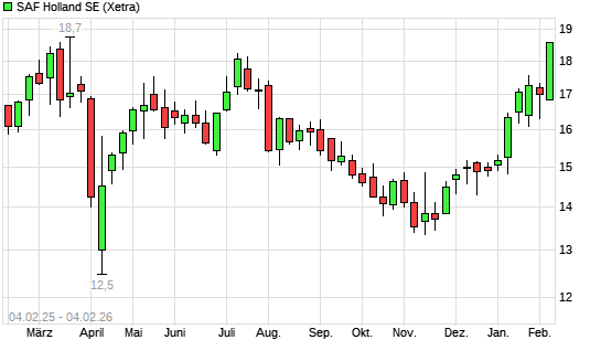 Mit dem Anstieg auf 17,34 EUR hat die SAF Holland-Aktie (ISIN DE000SAFH001) am 03.02.2026 ein neues 6-Monats-Hoch erreicht und damit den Kurs vom 23.01.2026 eingestellt.