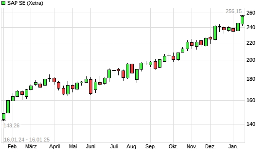 Mit dem Anstieg auf 254,00 EUR hat die SAP-Aktie (ISIN DE0007164600) am 15.01.2025 ein neues All-Time-High erreicht und damit den Kurs vom 10.01.2025 eingestellt.