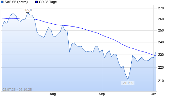 Mit dem Anstieg auf 229,95 EUR hat die SAP-Aktie am 01.10.2025 die 38-Tage-Linie nach oben gekreuzt.