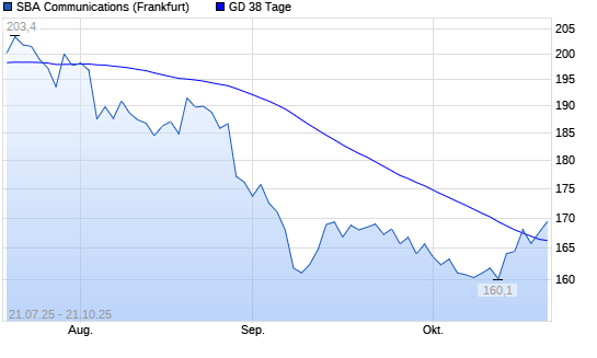 Mit dem Anstieg auf 167,65 EUR hat die SBA Communications-Aktie am 20.10.2025 die 38-Tage-Linie nach oben gekreuzt.