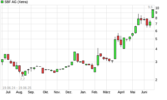 Mit dem Anstieg auf 9,30 EUR hat die SBF-Aktie (ISIN DE000A2AAE22) am 18.06.2025 ein neues 3-Jahres-Hoch erreicht und damit den Kurs vom 17.06.2025 eingestellt.