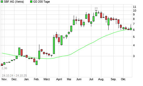 Mit dem Rücksetzer auf 6,10 EUR hat die SBF-Aktie am 23.10.2025 die 200-Tage-Linie nach unten gekreuzt.