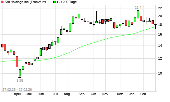 Mit dem Anstieg auf 17,80 EUR hat die SBI HOLDINGS-Aktie am 26.02.2026 die 200-Tage-Linie nach oben gekreuzt.