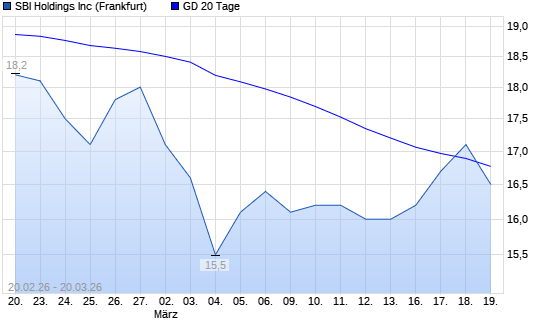 Mit dem Rücksetzer auf 16,50 EUR hat die SBI HOLDINGS-Aktie am 19.03.2026 die 20-Tage-Linie nach unten gekreuzt.