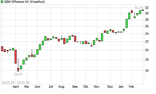 Mit dem Anstieg auf 31,08 EUR hat die SBM Offshore-Aktie (ISIN NL0000360618) am 23.02.2026 ein neues All-Time-High erreicht und damit den Kurs vom 26.01.2026 eingestellt.
