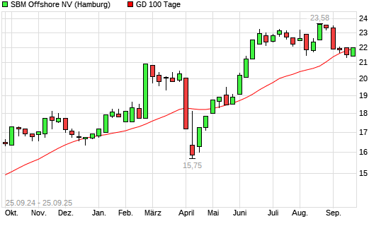 Mit dem Anstieg auf 21,96 EUR hat die SBM Offshore-Aktie am 24.09.2025 die 100-Tage-Linie nach oben gekreuzt.