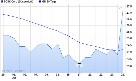 Mit dem Rücksetzer auf 24,00 EUR hat die SCSK-Aktie am 28.10.2025 die 20-Tage-Linie nach unten gekreuzt.
