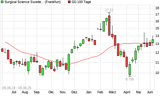 Mit dem Anstieg auf 13,28 EUR hat die SE0014428512-Aktie am 04.06.2025 die 100-Tage-Linie nach oben gekreuzt.
