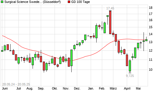 Mit dem Rücksetzer auf 13,20 EUR hat die SE0014428512-Aktie am 19.05.2025 die 100-Tage-Linie nach unten gekreuzt.