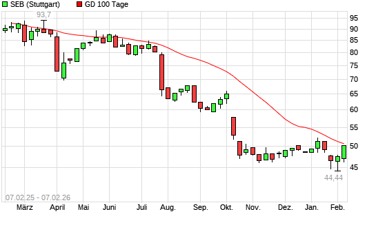 Mit dem Anstieg auf 50,25 EUR hat die SEB-Aktie am 06.02.2026 die 100-Tage-Linie nach oben gekreuzt.