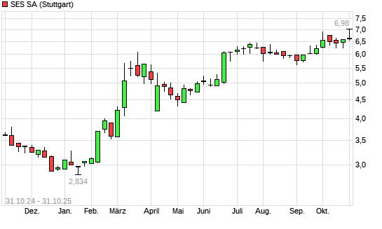 Mit dem Anstieg auf 6,97 EUR hat die SES Global-Aktie (ISIN LU0088087324) am 30.10.2025 ein neues 12-Monats-Hoch erreicht und damit den Kurs vom 29.10.2025 eingestellt.