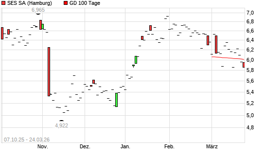 Mit dem Anstieg auf 6,02 EUR hat die SES Global-Aktie am 23.03.2026 die 100-Tage-Linie nach oben gekreuzt.