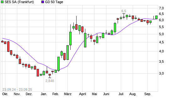 Mit dem Anstieg auf 6,09 EUR hat die SES Global-Aktie am 22.09.2025 die 50-Tage-Linie nach oben gekreuzt.