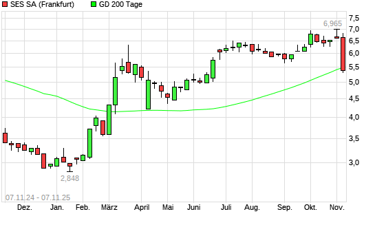Mit dem Rücksetzer auf 5,43 EUR hat die SES Global-Aktie am 06.11.2025 die 200-Tage-Linie nach unten gekreuzt.