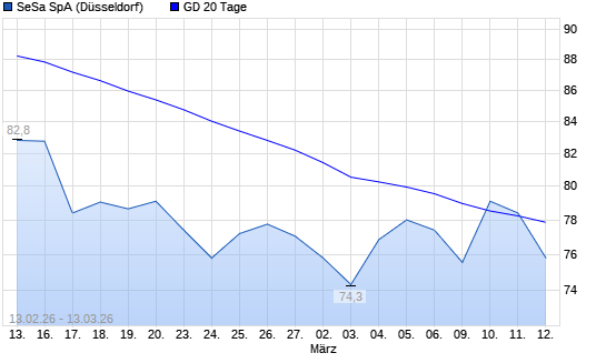 Mit dem Anstieg auf 80,10 EUR hat die SESA S.P.A.-Aktie am 12.03.2026 die 20-Tage-Linie nach oben gekreuzt.