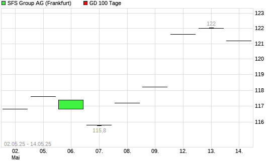 Mit dem Anstieg auf 122,00 EUR hat die SFS Group-Aktie am 13.05.2025 die 100-Tage-Linie nach oben gekreuzt.