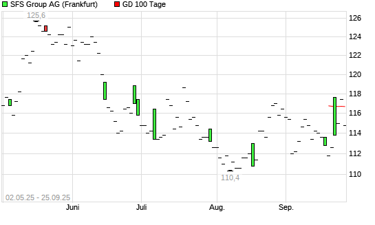 Mit dem Anstieg auf 117,40 EUR hat die SFS Group-Aktie am 24.09.2025 die 100-Tage-Linie nach oben gekreuzt.