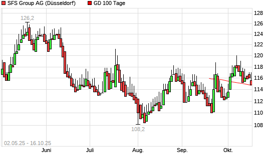 Mit dem Anstieg auf 116,80 EUR hat die SFS Group-Aktie am 15.10.2025 die 100-Tage-Linie nach oben gekreuzt.
