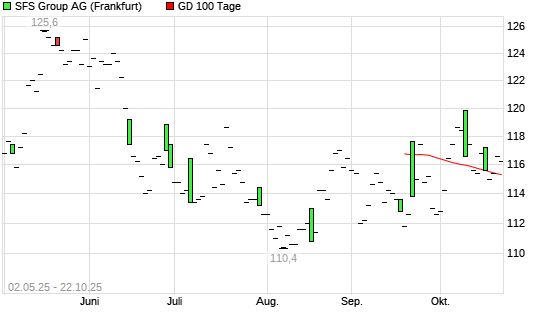 Mit dem Anstieg auf 116,60 EUR hat die SFS Group-Aktie am 21.10.2025 die 100-Tage-Linie nach oben gekreuzt.