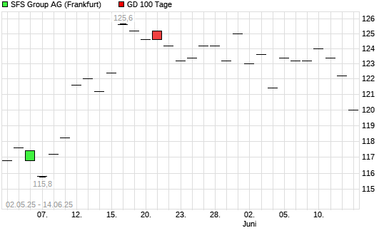 Mit dem Rücksetzer auf 120,00 EUR hat die SFS Group-Aktie am 13.06.2025 die 100-Tage-Linie nach unten gekreuzt.