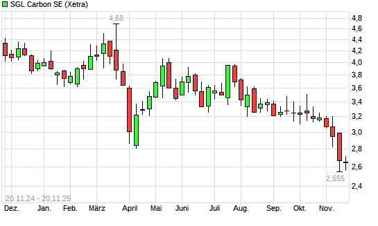 Mit dem Rücksetzer auf 2,58 EUR hat die SGL Carbon-Aktie (ISIN DE0007235301) am 19.11.2025 ein neues 5-Jahres-Tief erreicht und damit den Kurs vom 18.11.2025 eingestellt.