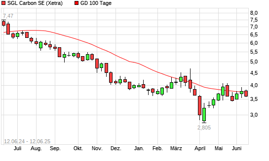 Mit dem Rücksetzer auf 3,63 EUR hat die SGL Carbon-Aktie am 11.06.2025 die 100-Tage-Linie nach unten gekreuzt.