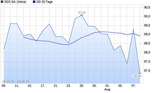 Mit dem Rücksetzer auf 89,18 EUR hat die SGS-Aktie am 08.08.2025 die 20-Tage-Linie nach unten gekreuzt.