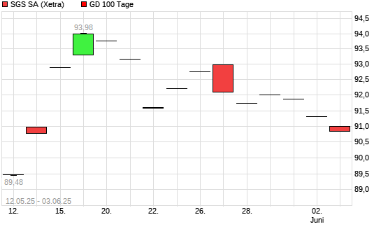 Mit dem Rücksetzer auf 91,64 EUR hat die SGS-Aktie am 02.06.2025 die 100-Tage-Linie nach unten gekreuzt.Die SGS-Aktie befindet sich seit dem 06.03.2025 im langfristigen Abwärtstrend und ...weiterlesen