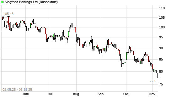 Mit dem Rücksetzer auf 79,50 EUR hat die SIEGFRIED N1-Aktie (ISIN CH1429326825) am 07.11.2025 ein neues 12-Monats-Tief erreicht und damit den Kurs vom 06.11.2025 eingestellt.