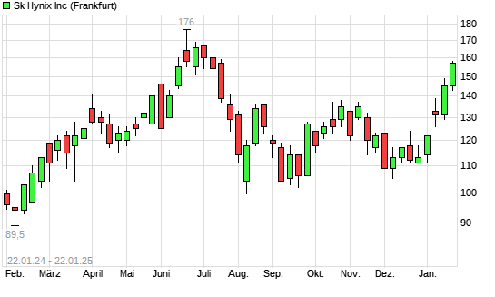 Mit dem Anstieg auf 148,00 EUR hat die SK Hynix-Aktie (ISIN US78392B1070) am 21.01.2025 ein neues 6-Monats-Hoch erreicht und damit den Kurs vom 20.01.2025 eingestellt.